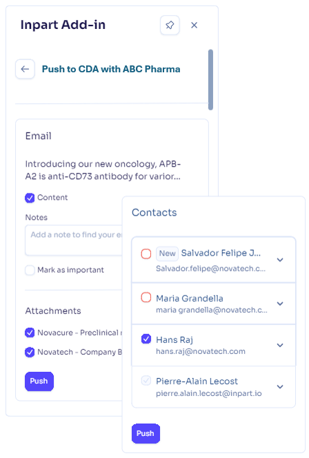N.B.: Pushed emails are stored in the Attachments tab for both alliances and agreements. They are already visible (list and preview) in alliances and will soon be visible in agreements too.