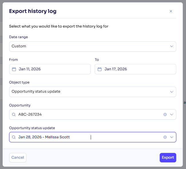 Access detailed, unalterable history logs directly from the Administration page to review, filter, search, and export all activity on your records, from recent updates to historical changes.